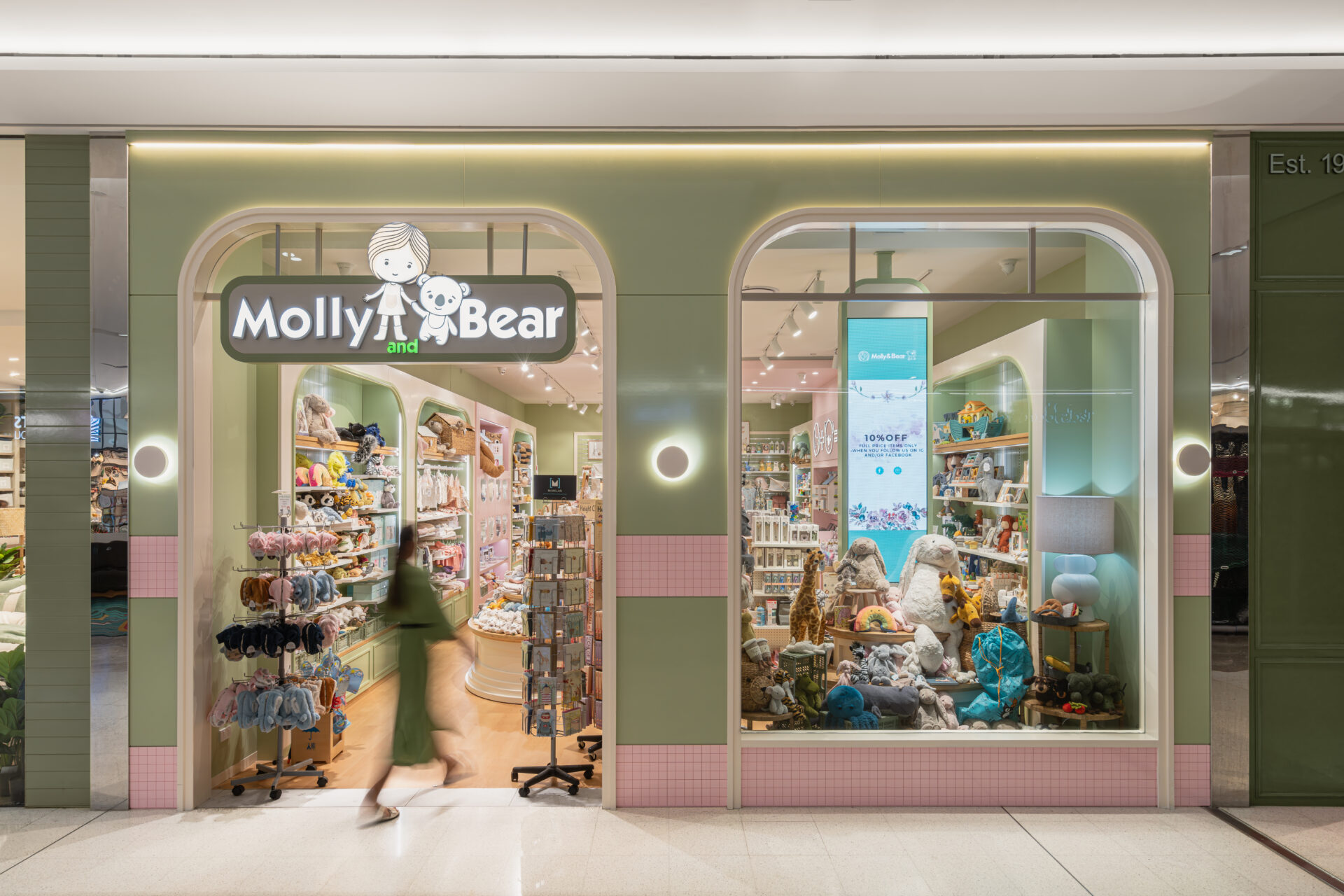 Throughout the project, our team worked closely with Molly & Bear to ensure that their vision for the space was realized while also adhering to budget and timeline constraints. We are proud to have delivered a quality, quirky, and pastel-inspired retail shop fit out within a shopping centre environment.