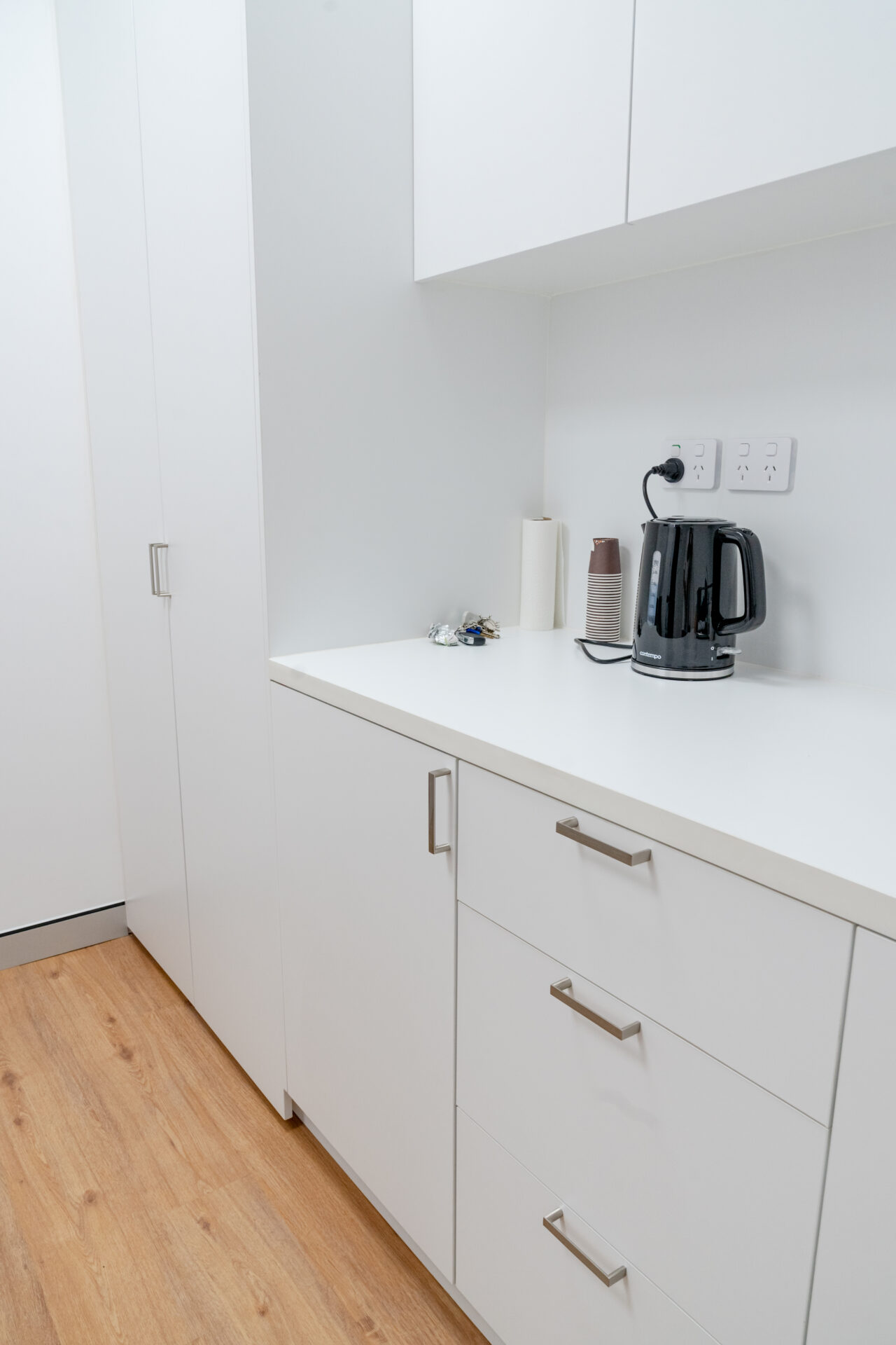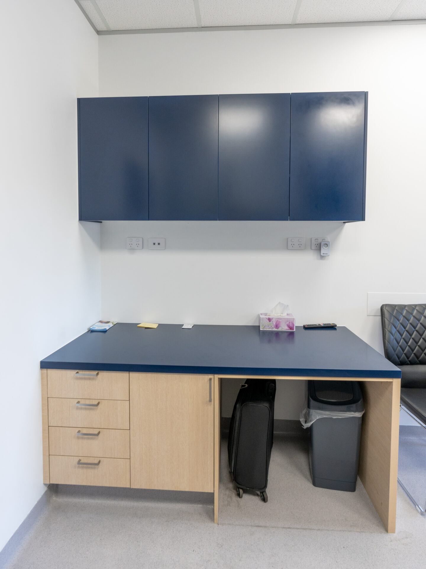 Read more: Parajuli MedicalThe deliverables consisted of the defit the existing commercial space. The Total Fitouts Sutherland Shire team efficiently and safely removed the previous fixtures, fittings, and finishes from the commercial space, preparing it for the new fitout. The shopfitters designed a private, neutral clinic with a calm flow for patients by working closely with the owners and design partners. The team developed a design concept that prioritised privacy and created a serene and inviting environment for patients. The layout and flow of the clinic were carefully planned to ensure a calm and comfortable experience. Installation of navy cabinetry, wooden features, built-in storage, and workstations was installed throughout the clinic. This provided functional storage solutions and creating a cohesive and stylish look. Wooden features were incorporated to add warmth and natural beauty to the space. Workstations were thoughtfully designed and installed to optimise efficiency and productivity.