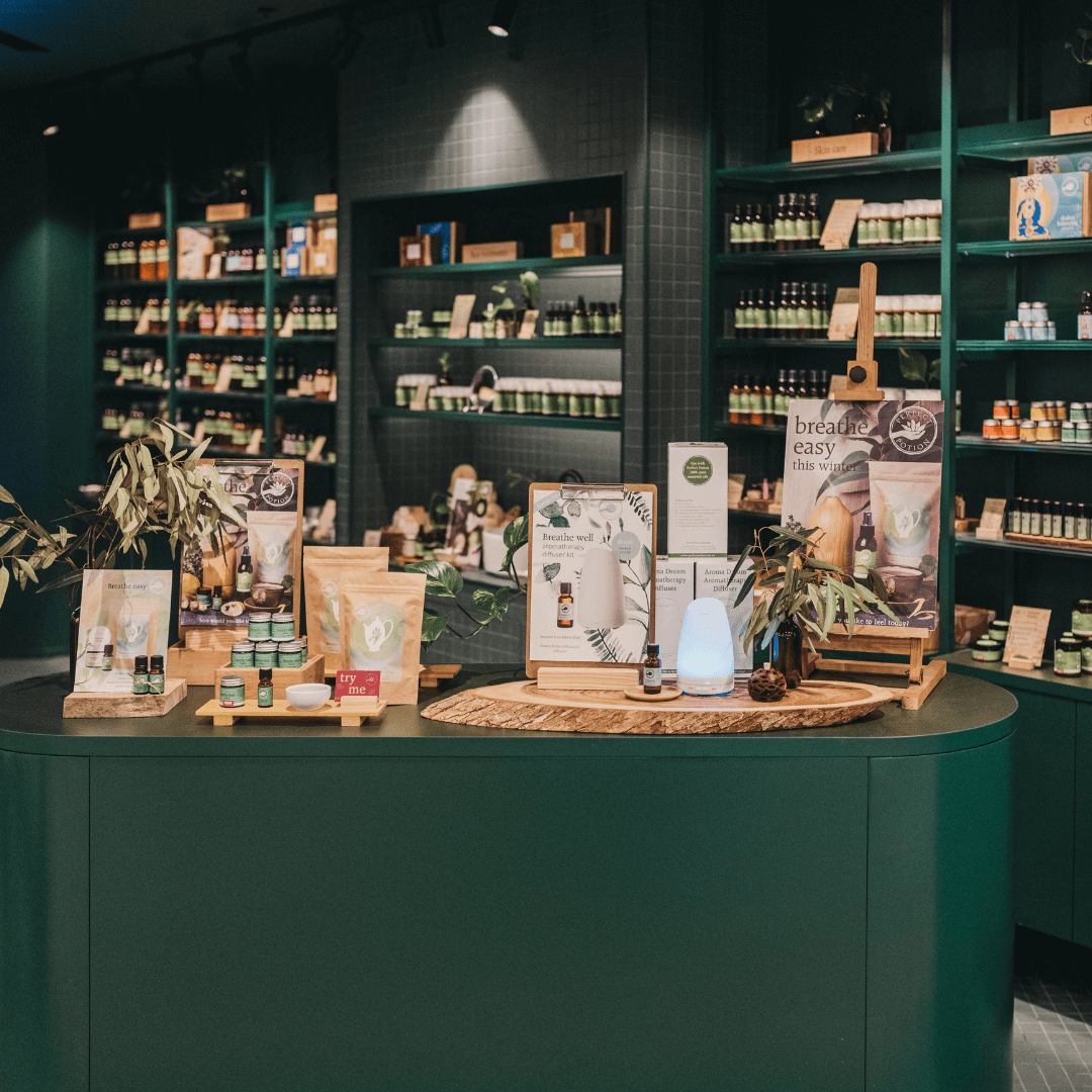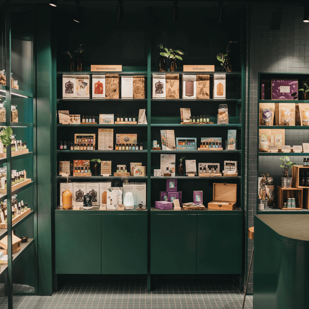 The interior design concept centred around a palette of deep greens and wooden tones, purposefully selected to create an environment that emanated tranquillity and allure. This amalgamation of colours and textures fostered an atmosphere of calmness and warmth, consistent with Perfect Potion’s brand identity. Total Fitouts Surry Hills and Parramatta’s in-house design team executed this vision with precision, ensuring that every element not only adhered to the brand’s identity but also significantly enhanced the overall shopping experience. The final result was a store that embodied the essence of Perfect Potion’s offerings, both in terms of product and atmosphere.