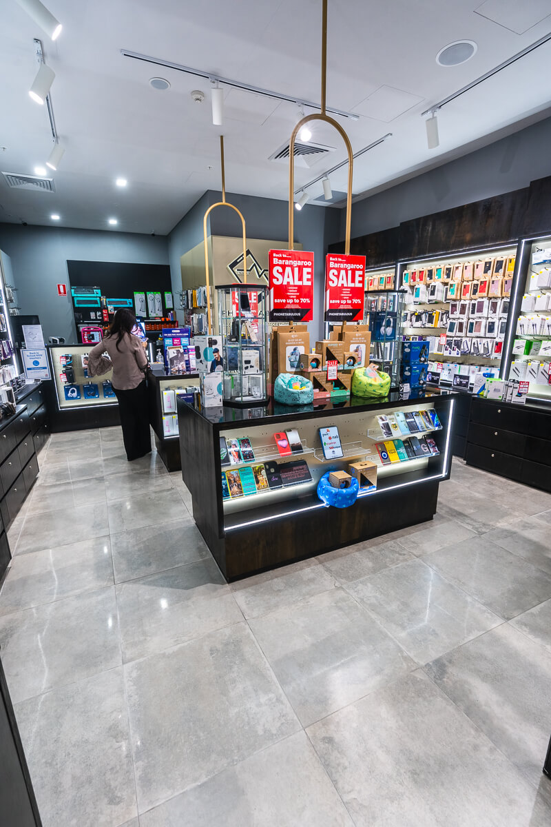 Total Fitouts Surry Hills and Parramatta were tasked with the transformation of an empty commercial tenancy into a contemporary and sleek retail space for Phonetabulous. Phonetabulous specialises in phone repairs and phone merchandise, and the goal was to create a modern, well-lit environment that would enhance the customer shopping experience.