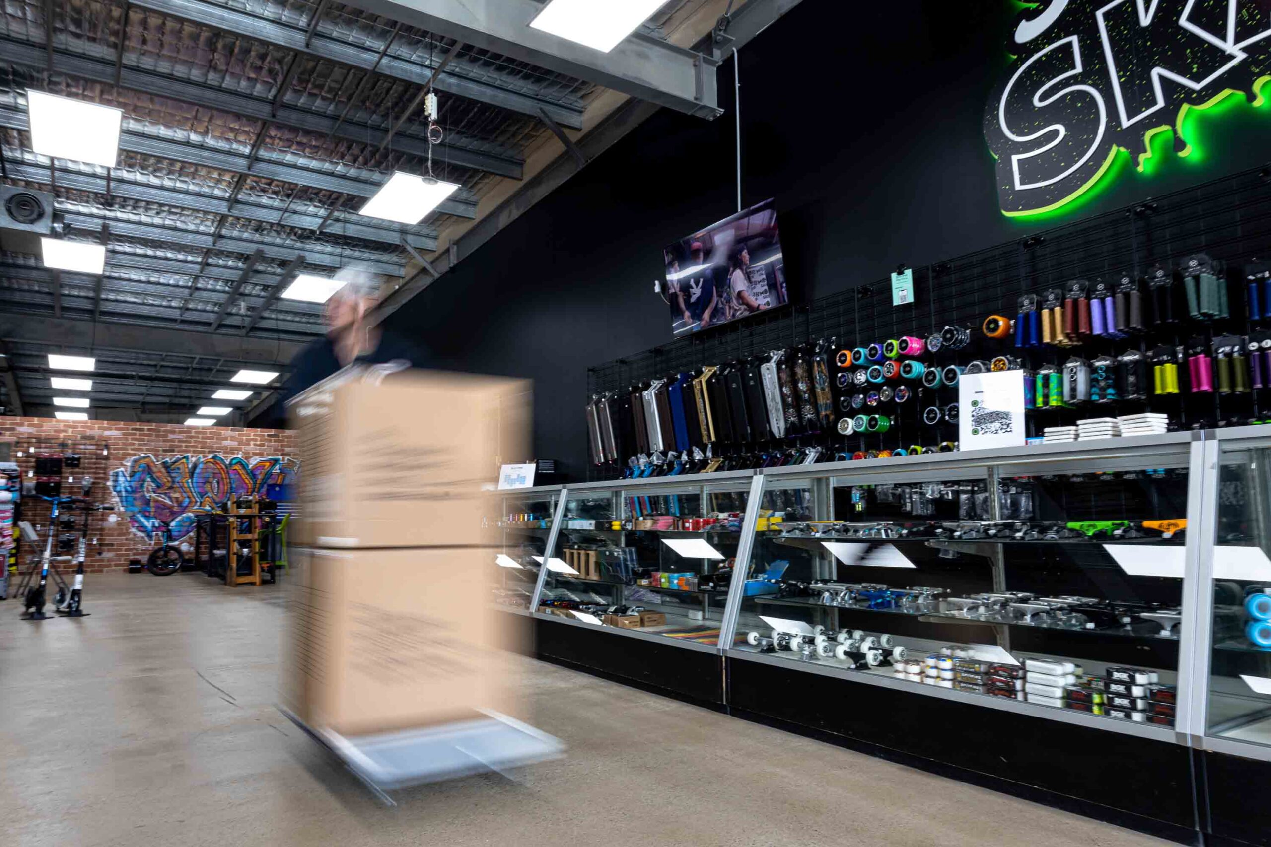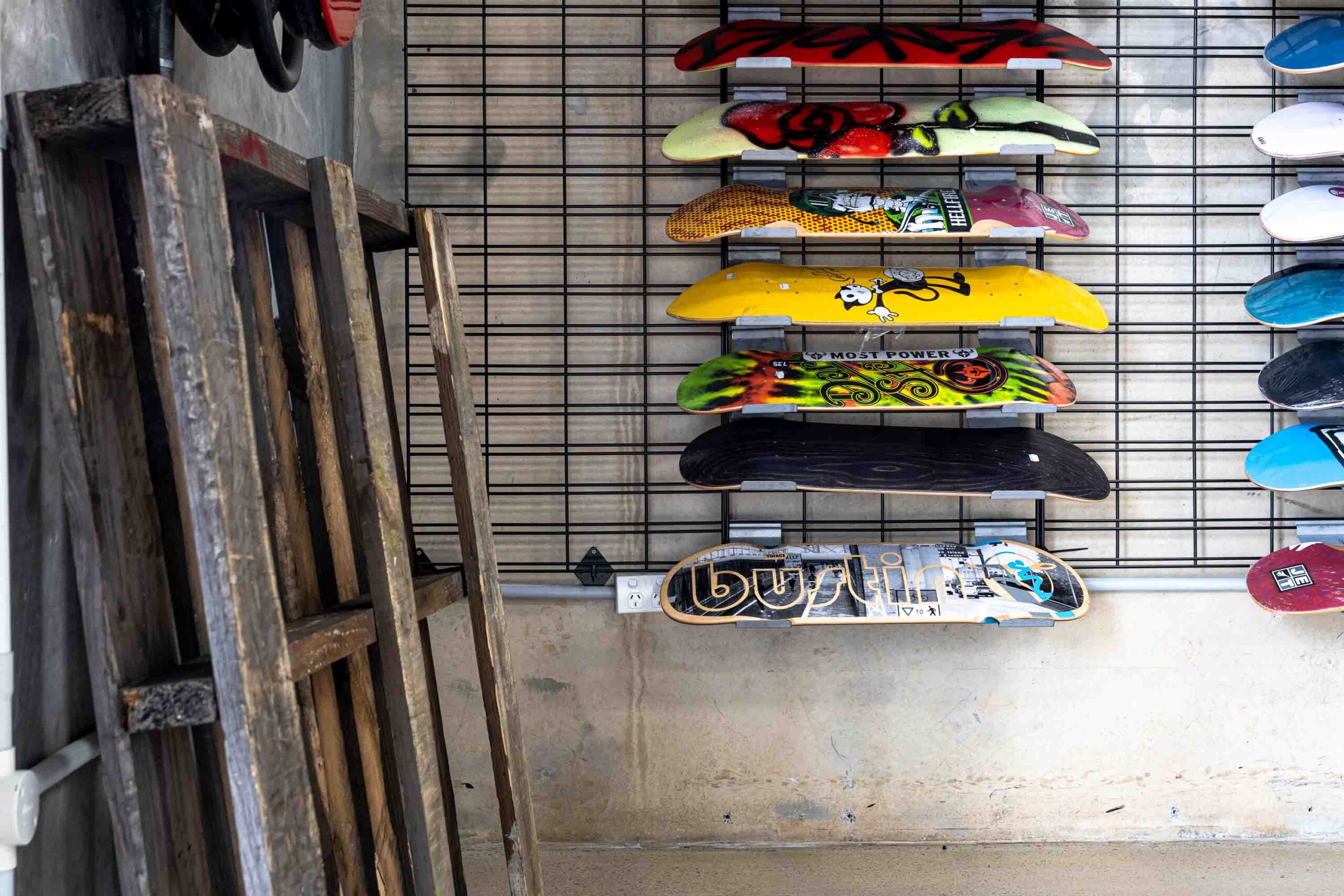 Ultimately, Heath helped the owners of Scooter and Skate create a skate shop that is more than a shop – it’s a relaxed and joyful celebration of skate culture, and a place for the local community to come together to skate, connect, play, and source new gear.