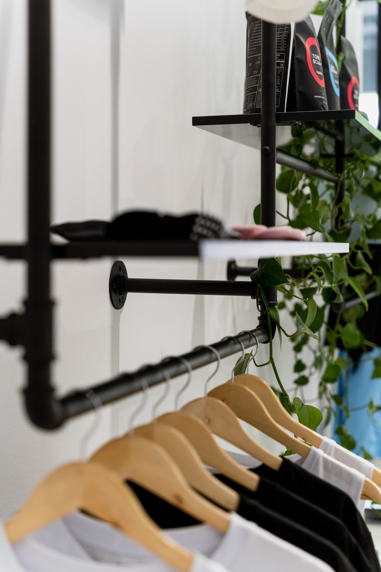 The team built on-trend black shelving to showcase merchandise, a custom-built counter with panelling, led lighting, and a classic stone bench top. The space was brought together with the feature lighting and ‘quote’ throughout. The modern customer bathroom showcases the stylish commercial fitout.